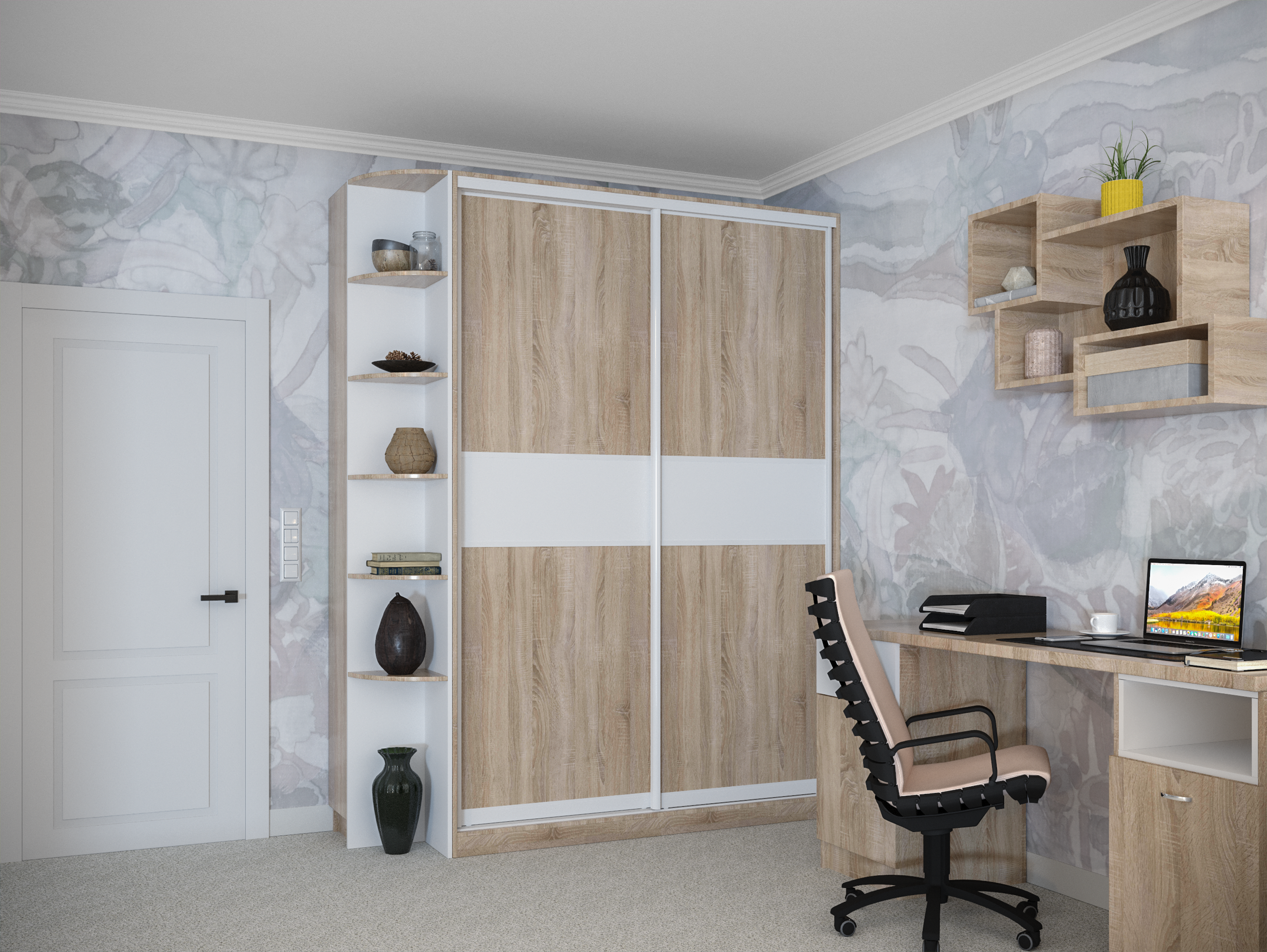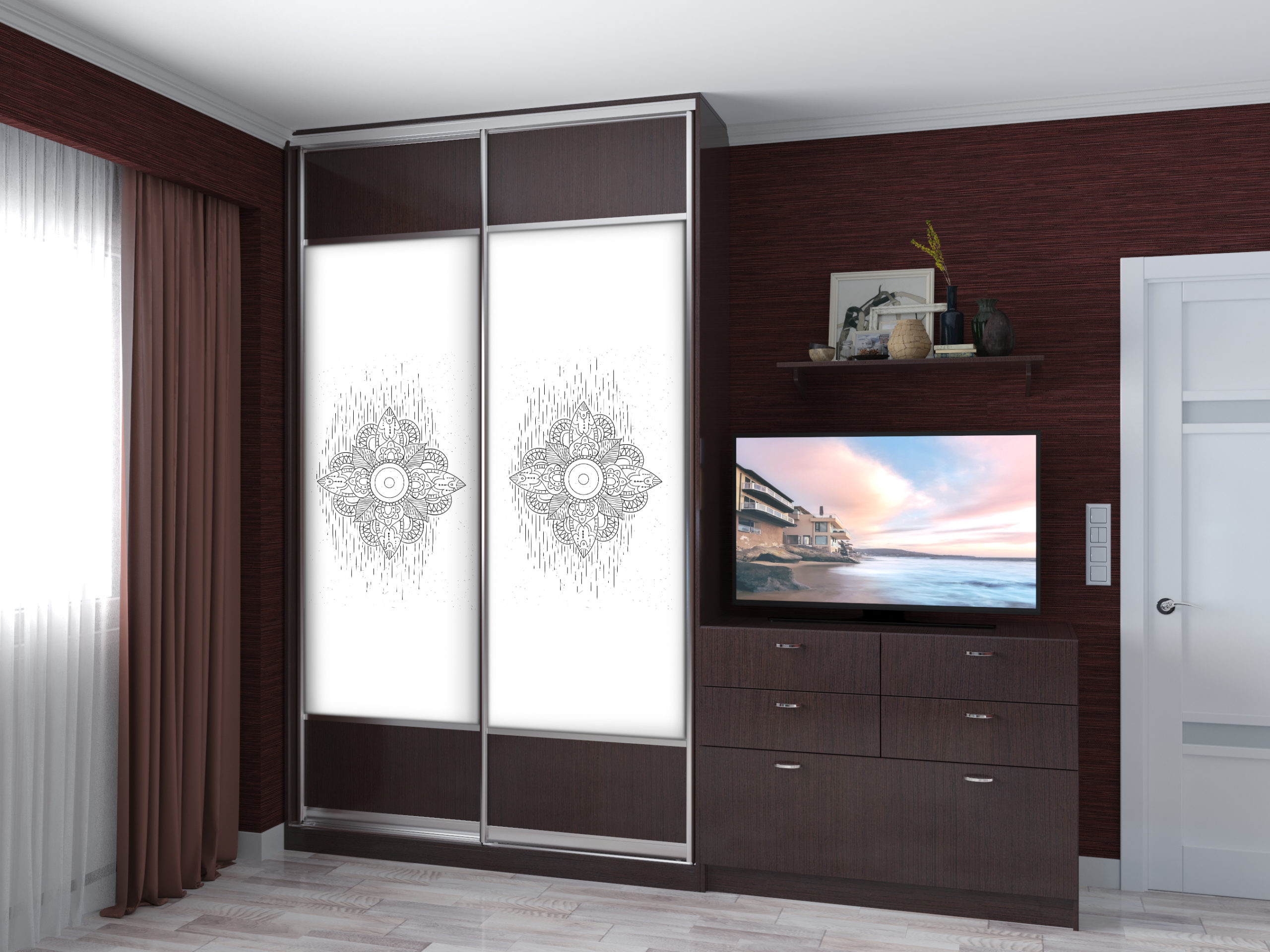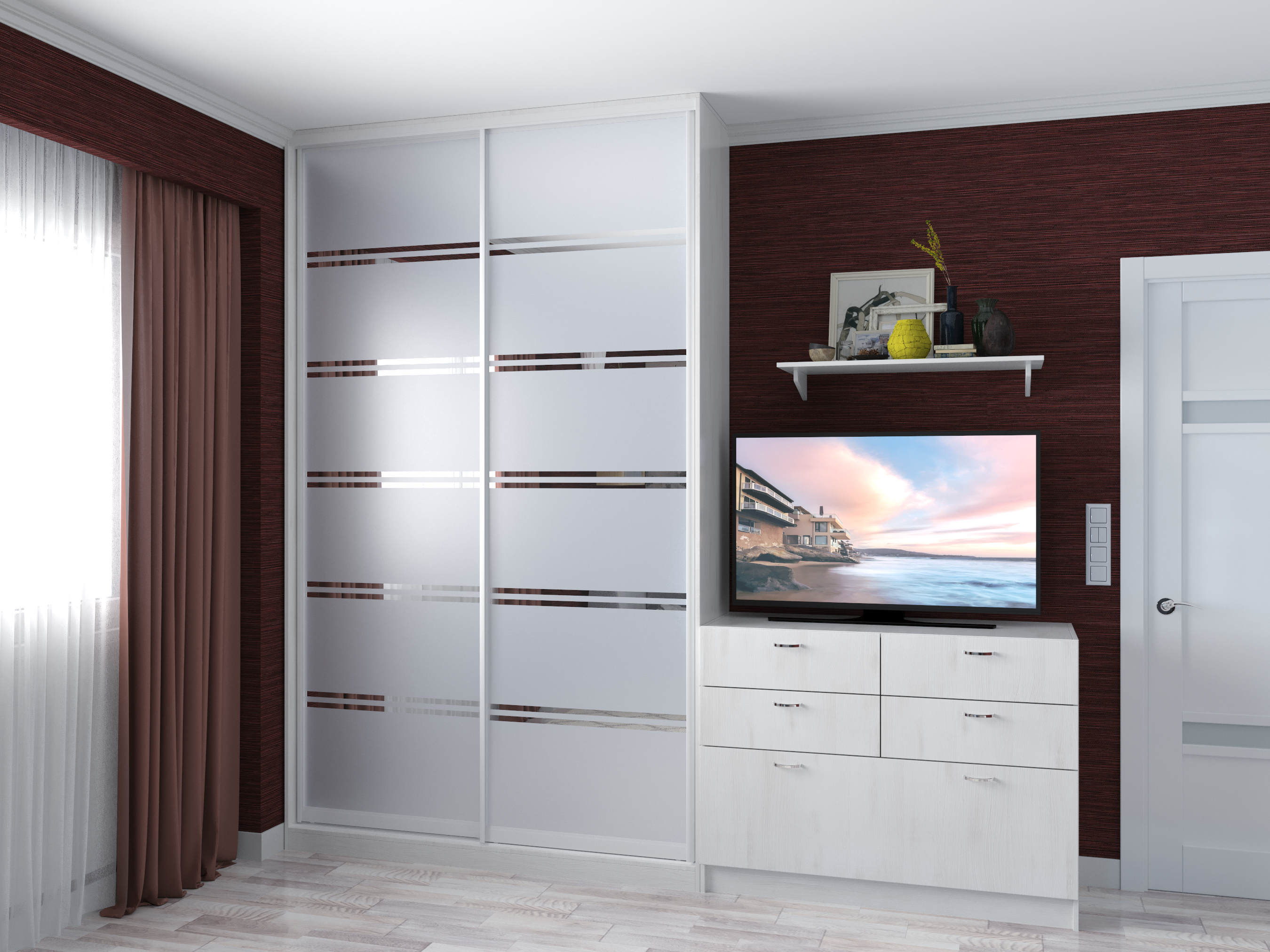 Усі шафи-купе можуть доповнюватись висувними шухлядами, поличками та кутовими завершеннями.
