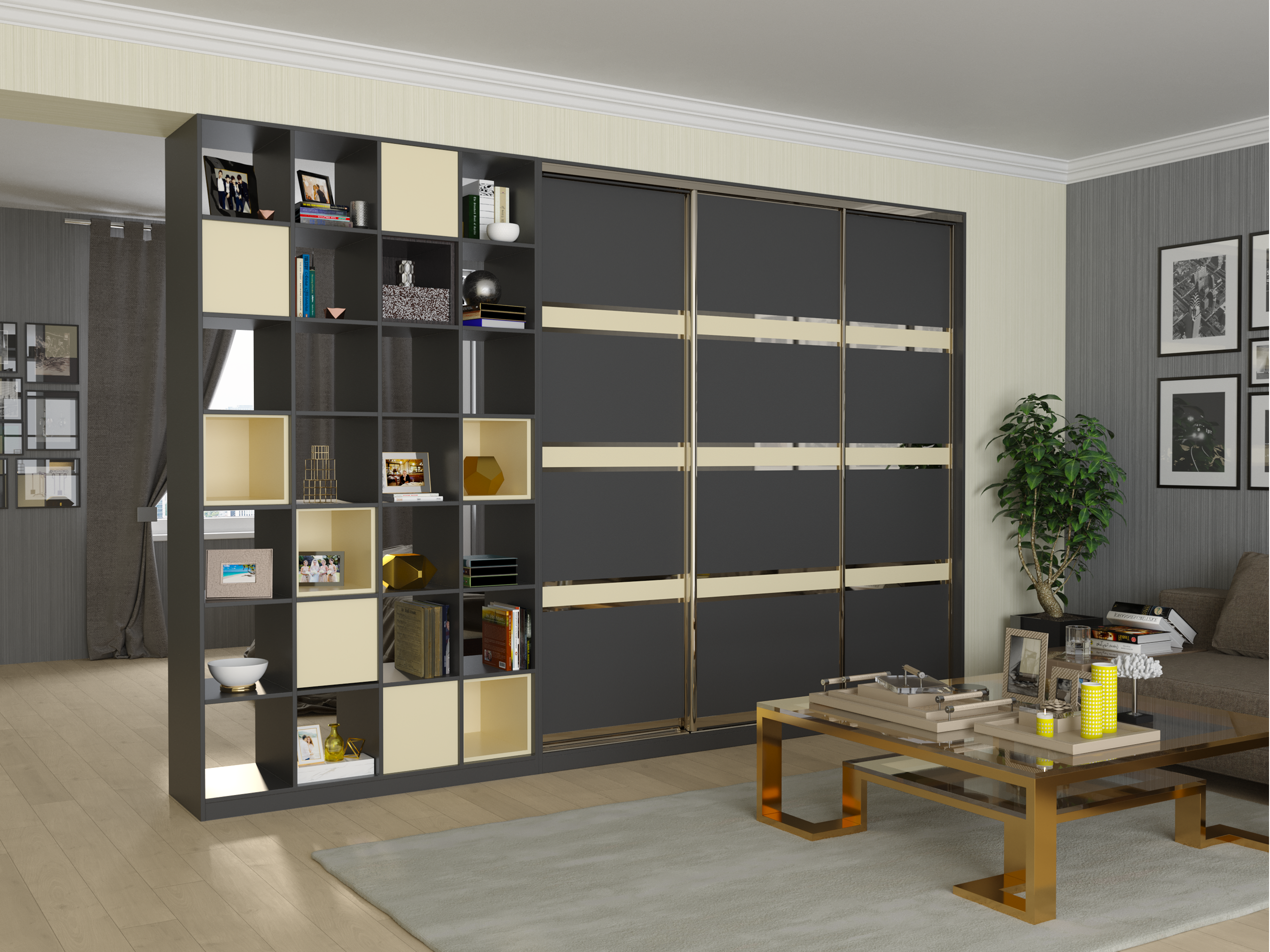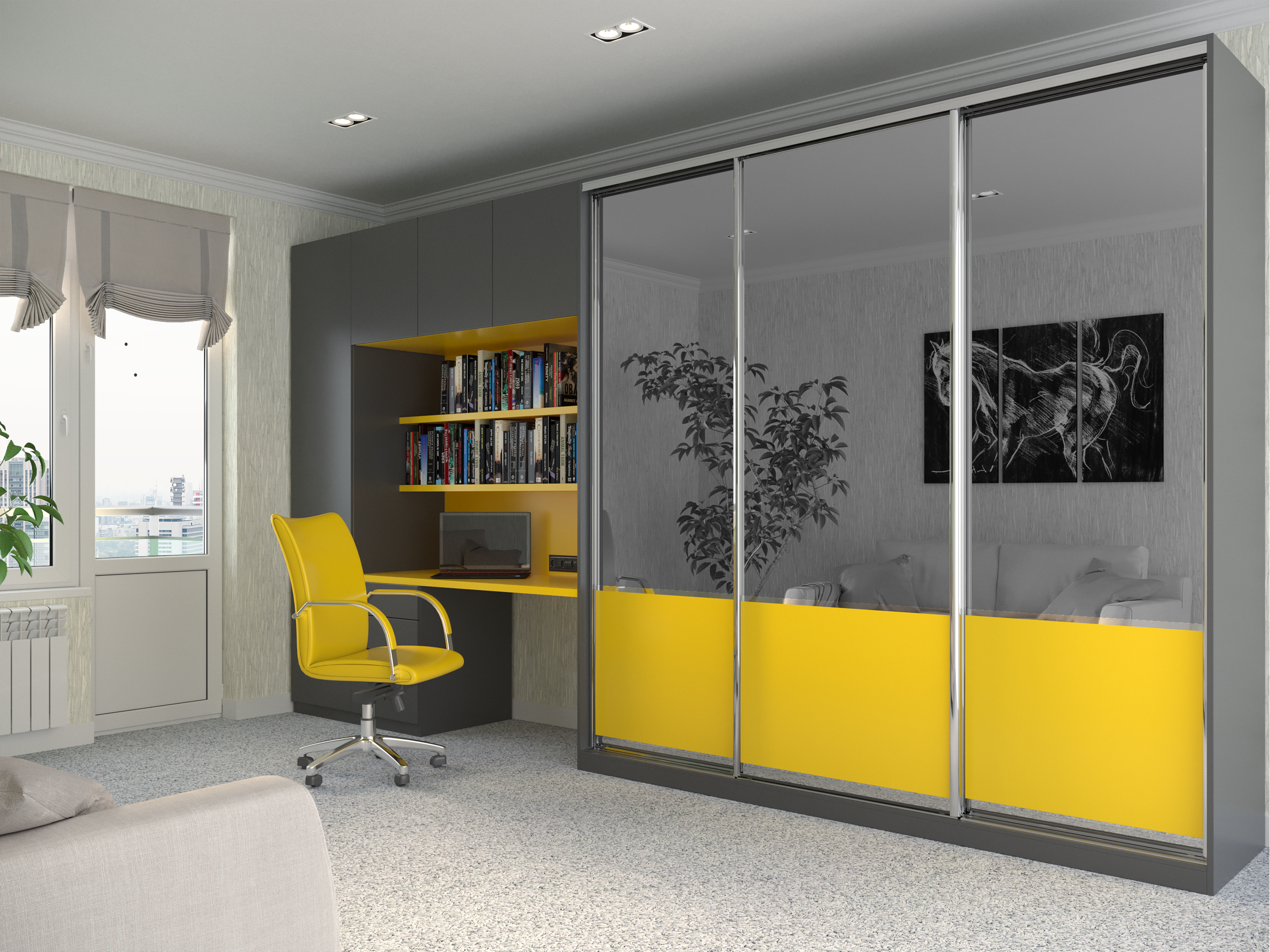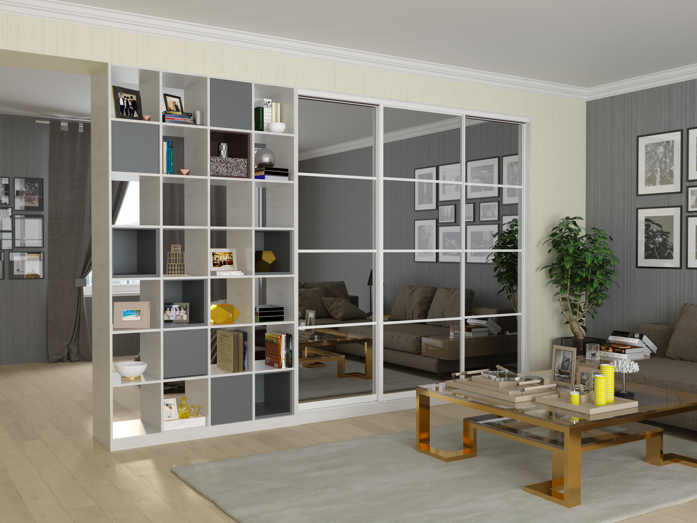 Усі шафи-купе можуть доповнюватись висувними шухлядами, поличками та кутовими завершеннями.