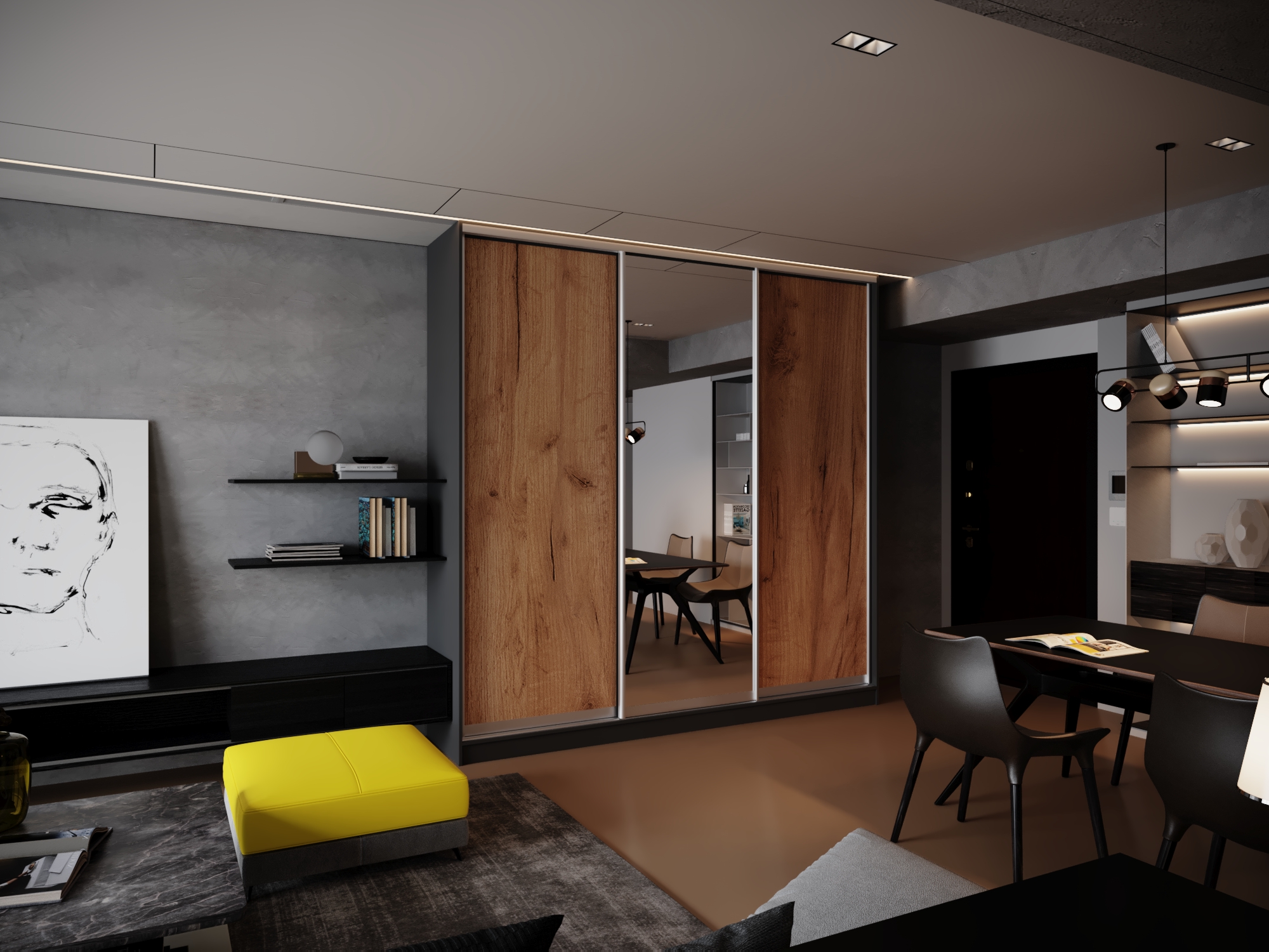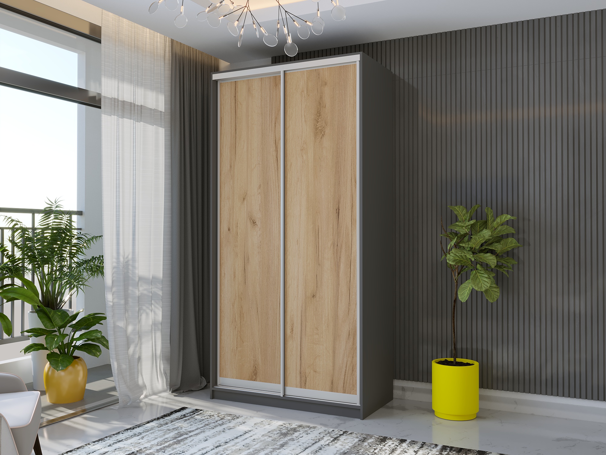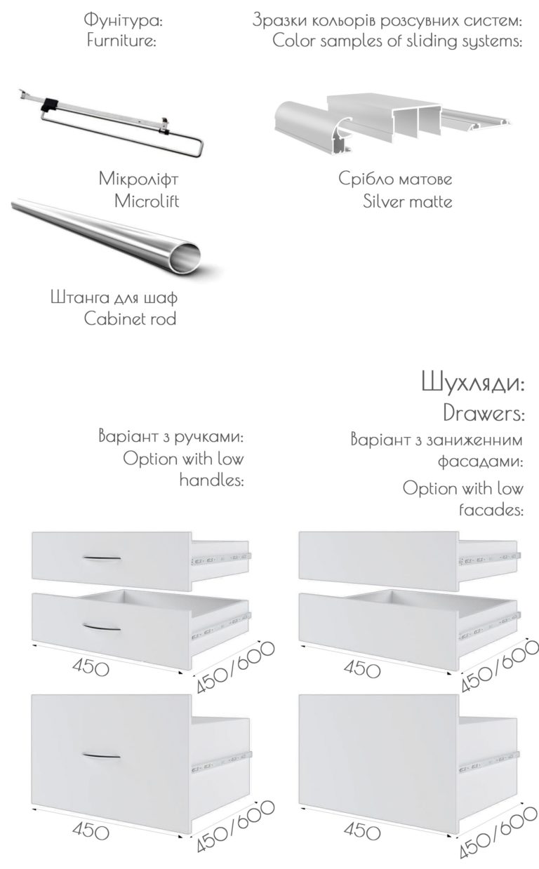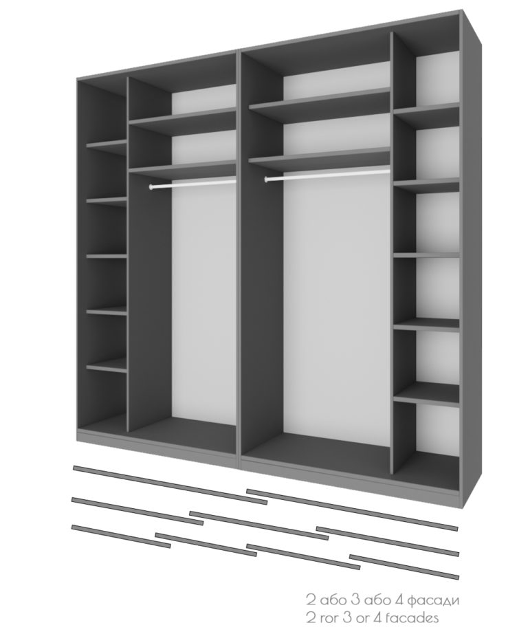 • Усі шафи-купе можуть доповнюватись висувними шухлядами.